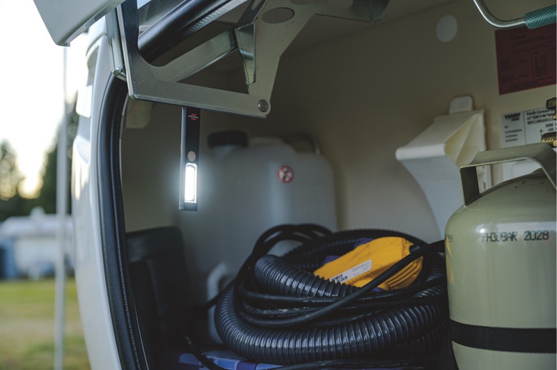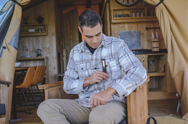 Lampe d'atelier idéale par son format de poche pour accrocher à un sac ou à la ceinture grâce au clip - fixation (avec crochet intégré) à une surface métallique à l'aide de l'aimant intégré au socle.