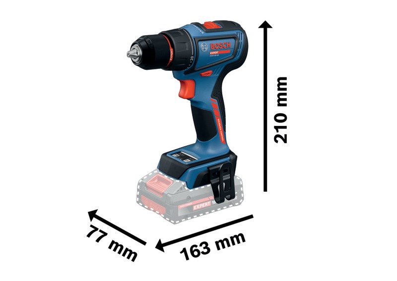 Longueur de tête de 163 mm avec mandrin métallique de 13 mm pour une robustesse renforcée et un excellent transfert du couple.