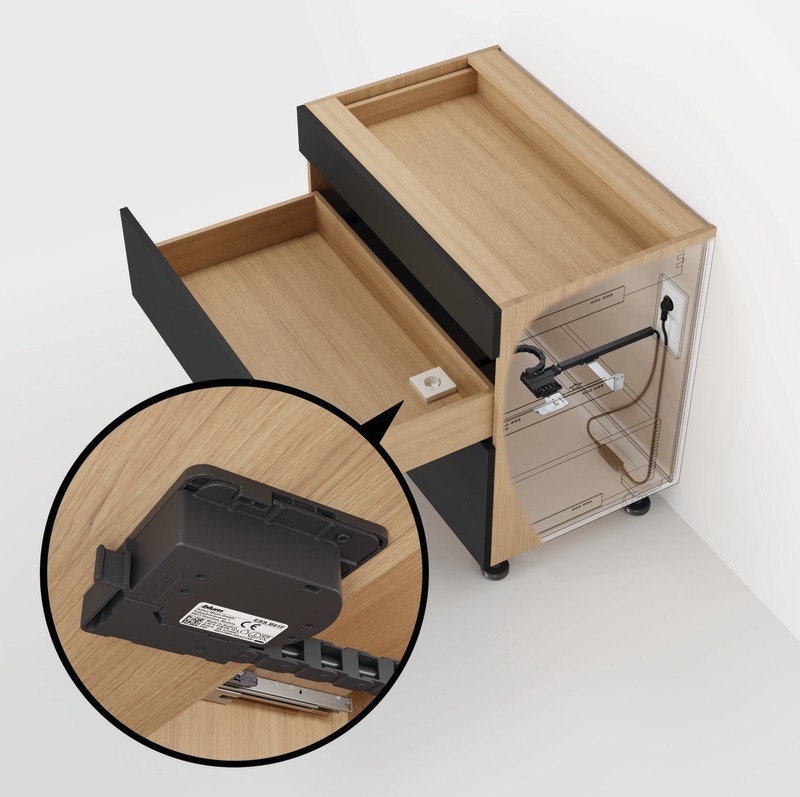 La source de courant est ainsi disponible là où elle est nécessaire et les appareils électriques peuvent être élégamment dissimulés dans les meubles tout en étant toujours prêts à l'emploi chargés.