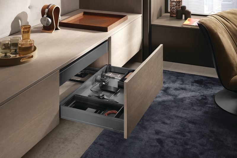 Se combine parfaitement avec BLUMOTION, TIP-ON BLUMOTION ainsi que le SERVO-DRIVE et s'intègre facilement dans les systèmes coulissants MOVENTO et LÉGRABOX.