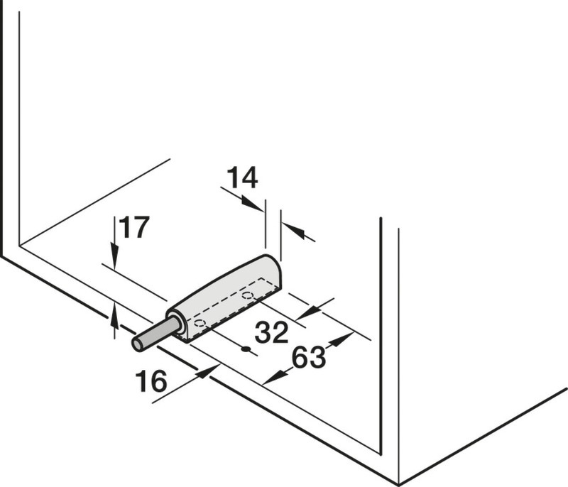 Pour montage en applique Häfele Free loqueteau à pression ø 10 x 60 mm.