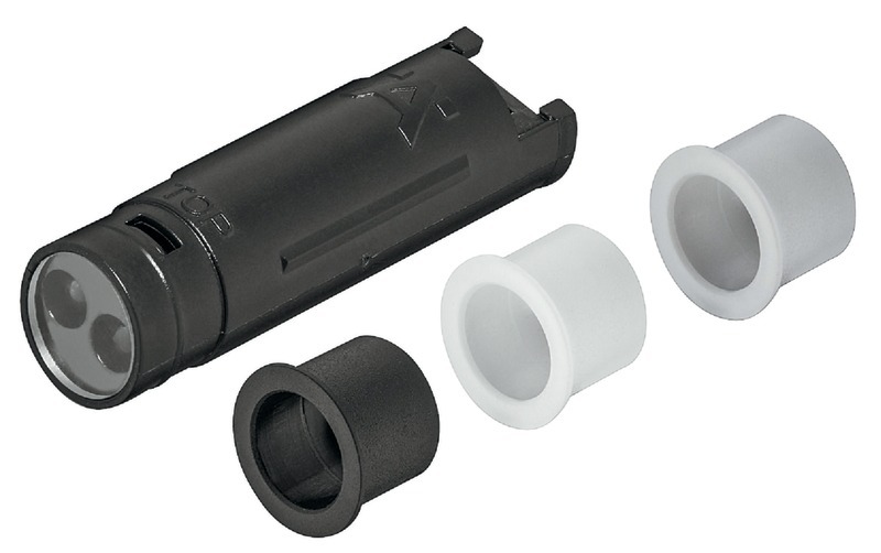 Livré avec 3 douilles de recouvrement en blanc, gris et noir pour s'adapter aux coloris des panneaux.