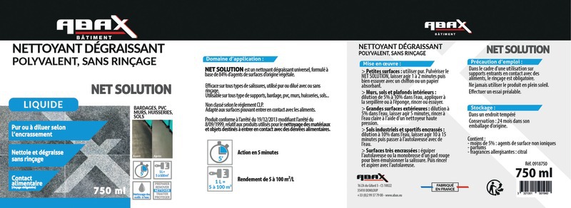 - Dans le cadre d'une utilisation sur supports entrants en contact avec des aliments, le rinçage est obligatoire.