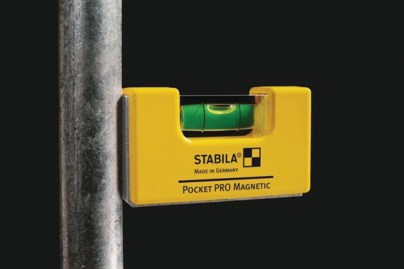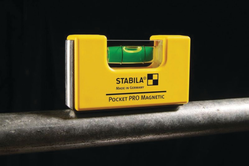 Niveau à bulle professionnel miniature aimanté, pour des mesures horizontales et verticales sur des surfaces plates et rondes.