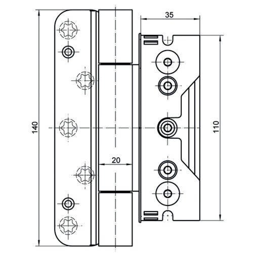 - Réglage en 3D (latéral +/- 3,0 mm, hauteur +/- 3,0 mm, appui +/- 3,0 mm).