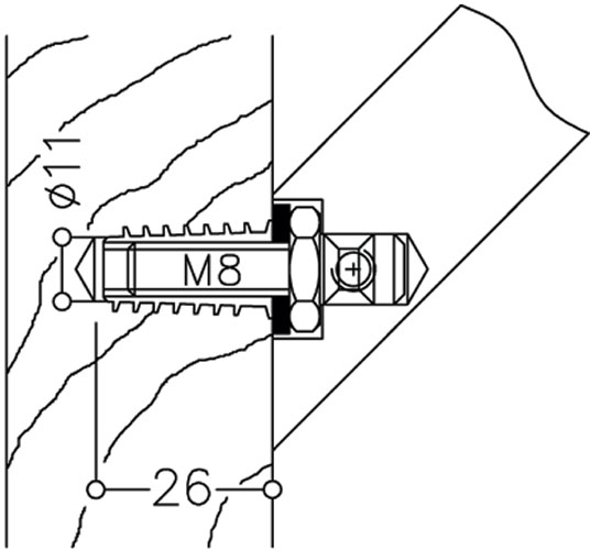 Fixation par l'avant du profil (poignée filetée).