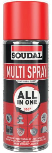 Spray universel de grande qualité qui allie huit actions : anti-rouille, lubrifiant, nettoyant, anti-humidité, huile dégrippante, anti-corrosion, spray de contact, spray antichoc.