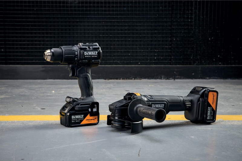 Kit 2 outils McLaren Perceuse-visseuse à percussion DCD86M + Meuleuse DCG45M + batteries + chargeur + pince OFFERTE