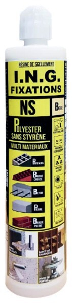 Résine d’ancrage sans styrène, idéale pour scellement dans béton et maçonneries (béton, parpaing, briques pleines/creuses, béton cellulaire, pierre).