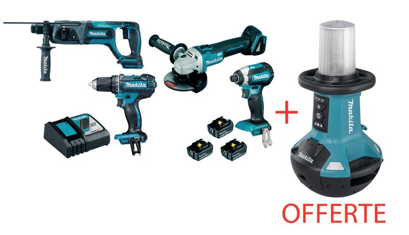 Ensemble 4 outils + 3 batteries 18V - 5Ah + chargeur + sac de transport + 1 lampe DEADLM810 OFFERTE