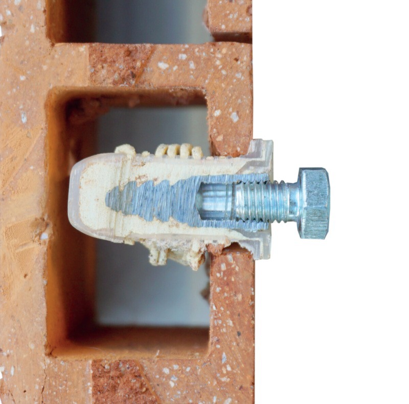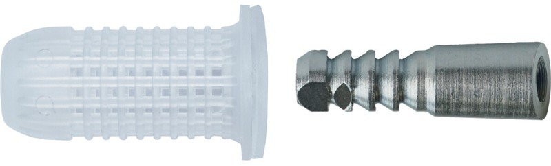 Insert taraudé Ø10 x 32 mm + filtre nylon Ø16 x 35 pour scellement à la résine.