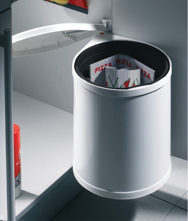 Très pratique, le couvercle se soulève et reste à l'intérieur du meuble pour libérer l'accès à la poubelle.